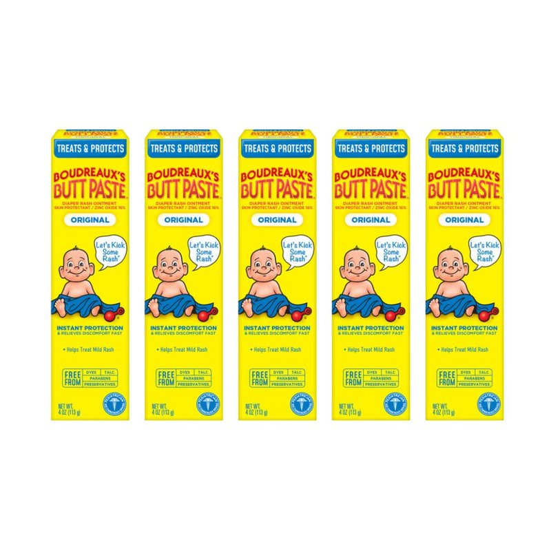 Boudreaux's Butt Paste Original Diaper Rash Cream, Ointment for Baby, 4 Oz (Pack of 5)