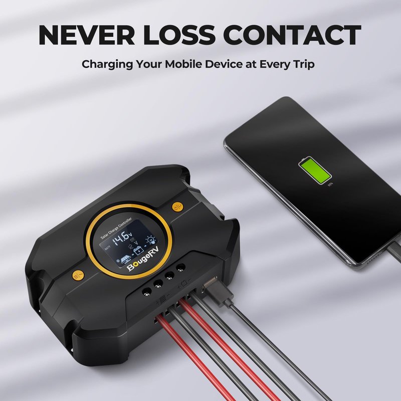 BougeRV PWM Solar Charge Controller Negative Ground