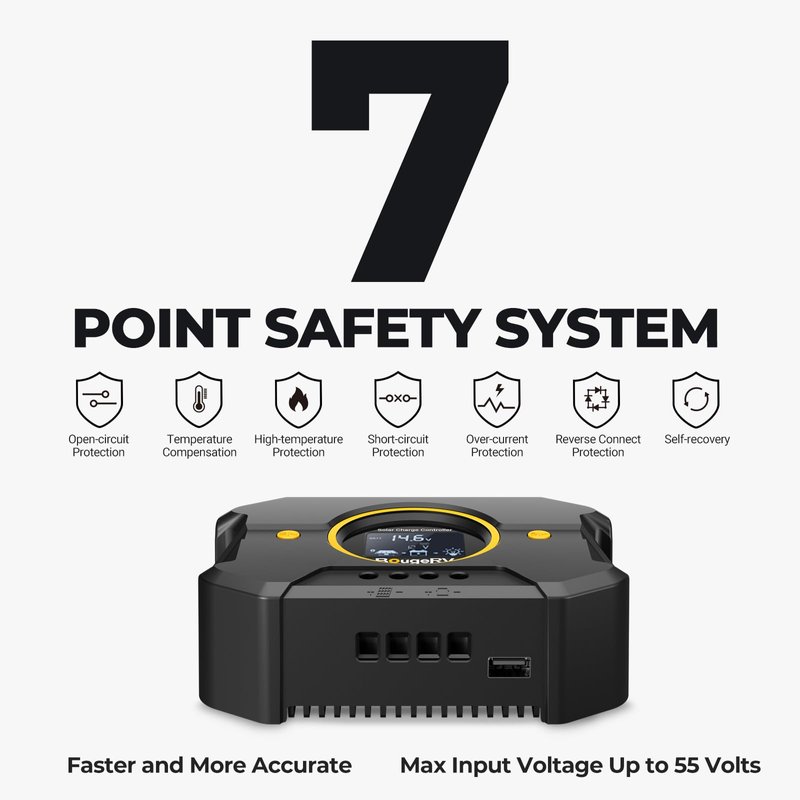 - SOLAR PANEL REGULATOR: Max PV input voltage 55 volts, this solar panel regulator can handle 4500 watts input for 12 volts battery system, 900 watts input for 24 volts system.