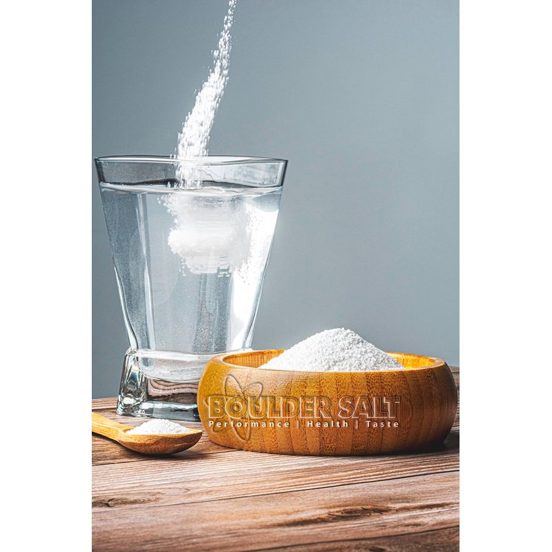 Healthy Salt - Electrolyte Salts for Food or Water. Boulder Salt is a special blend of salts that tastes great (with 40% less sodium). It has the benefit of giving access to a great tasting salt for those on a low sodium diet. Boulder salt is truly a healthy salt. In water, the salts are alkaline, which helps sooth the stomach. On food, it tastes great and is a healthy alternative to regular table salt (sodium chloride). High magnesium provides the benefit of cramp relief/restless leg syndrome. Convenient to use: on food or in water. Purity: additive-free, sugar-free. Made in Colorado USA