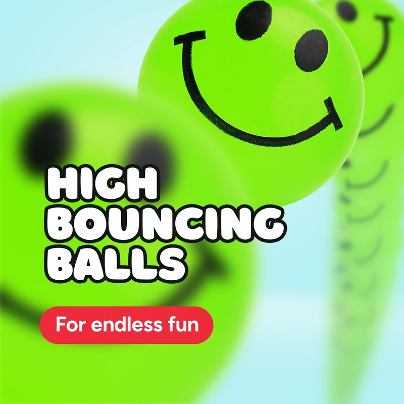 Experience High Bounce and Cool Glow: Featuring delightful smiley face designs and the coolest glow effect, these bouncy balls are sure to be a hit. Activate the glow by exposing them to light, then watch as they light up the room with every bounce.