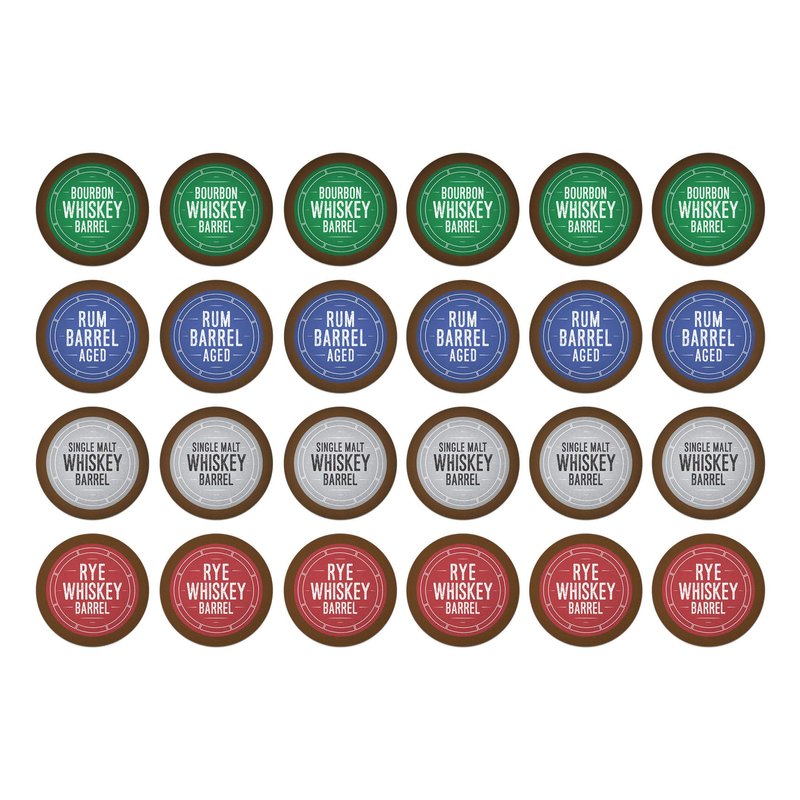 Bourbon Barrel Aged Coffee 24ct Variety Pack Set, Single Origin Coffee Paired with Bourbon, Rye Whiskey, Malt Whiskey and Rum, 24ct