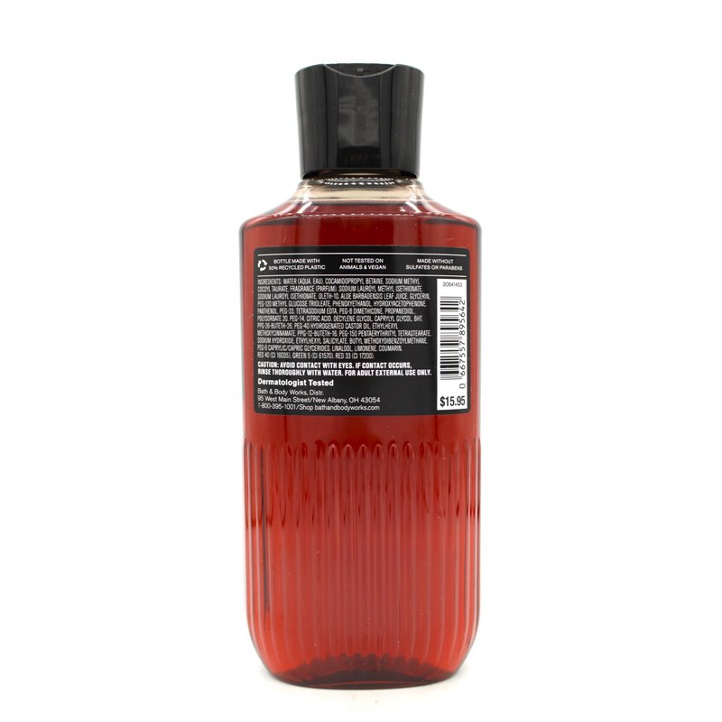 Fragrance Name: Bourbon / Fragrances Notes: White Pepper, Dark Amber, Kentucky Oak / Size: 10 fl oz (295 mL) / Made with Pro Vitamin B5 and Aloe / Not Tested on Animals & Vegan / Dermatologist Tested / Made without Parabens or Sulfates