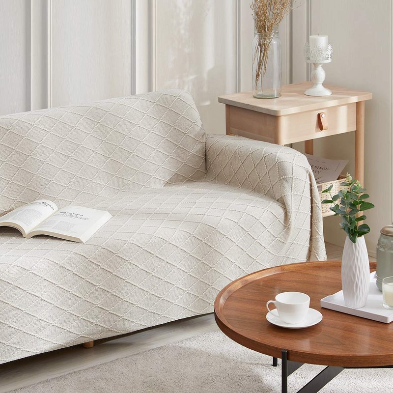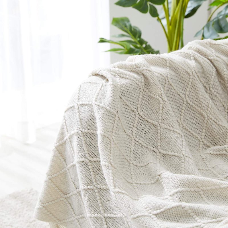 BOURINA Throw Blanket Textured Solid Soft Sofa Throw Bed Runner Couch Cover Knitted Decorative Blanket Bed Runner, 50 x90 Inches Beige