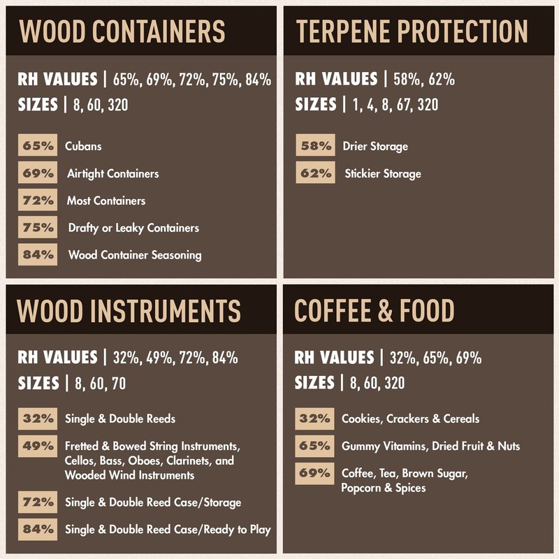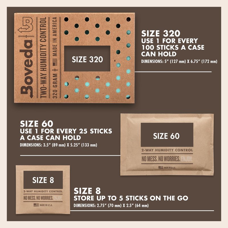- WHY THIS BOVEDA: 72% RH is for premiums in humidifier boxes made from porous materials, like wood or leather. This slightly higher RH is good if you live in low humidity or high altitudes. Use one 5.25"x3.5" humidifier packet for every 25 TOTAL items your humidifier box can hold. NATURAL INGREDIENTS. Trusted by over 3 million people to protect & maintain items at the perfect humidity level. WE GUARANTEE QUALITY! If you’re not 100% satisfied, reach out for a full refund for up to 1 year.