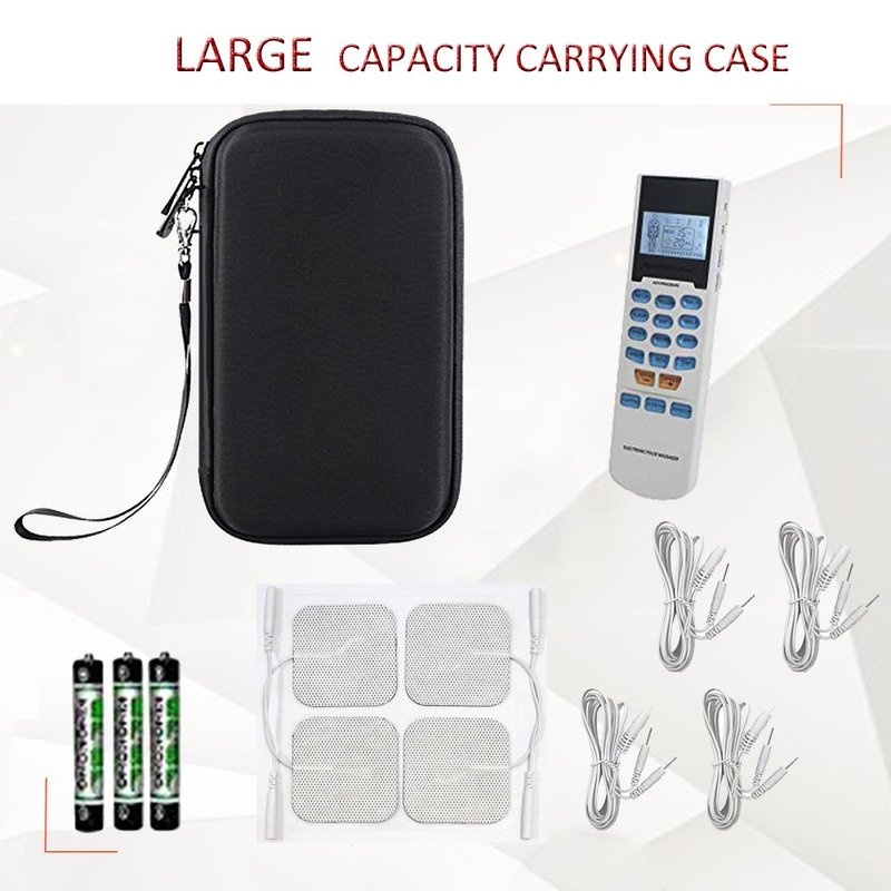 - Roomy & Practical Design: It comes with a room enough mesh pocket for AAA battery, electrode wires, electrode pads, pads holder, instructions and other items. An Elastic band keeps the electronic pulse massager and electrode gel from any movement. Double zipper design provides easy access to insert and remove your equipment.