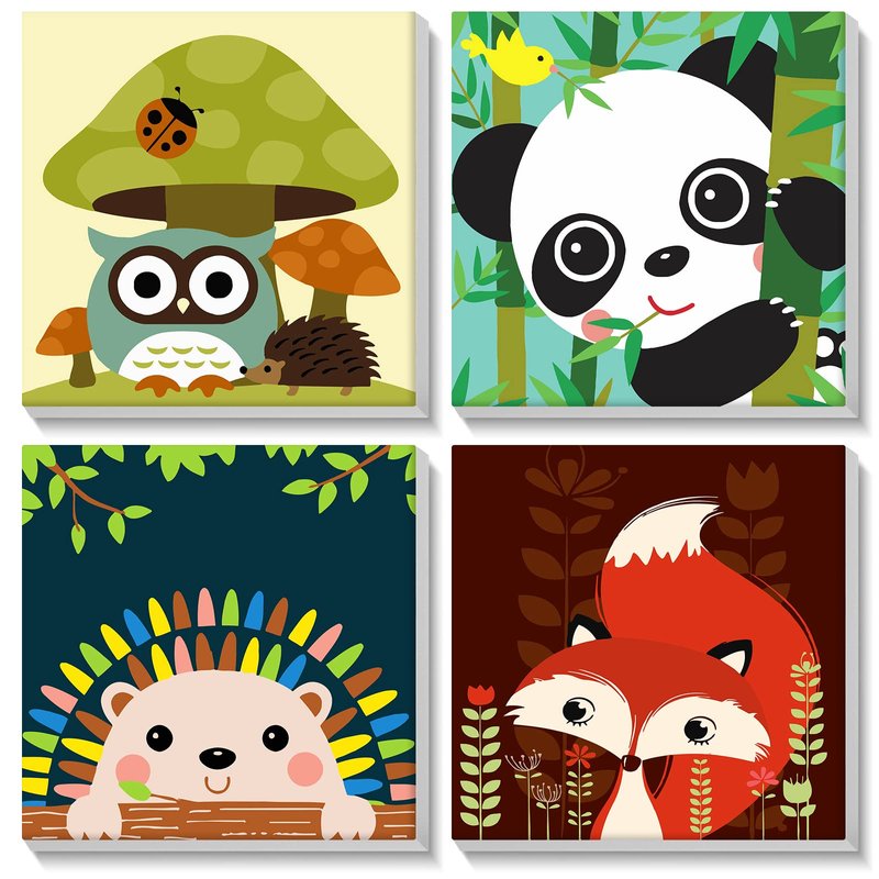 Bowetile 4 Pack Framed Paint by Numbers for Kids, Cartoon Paint by Numbers for Kids Ages 8-12, Kids Paint by Number Kits on Canvas, DIY Oil Painting Acrylic Paints for Home Wall Art Decor, 8x8in