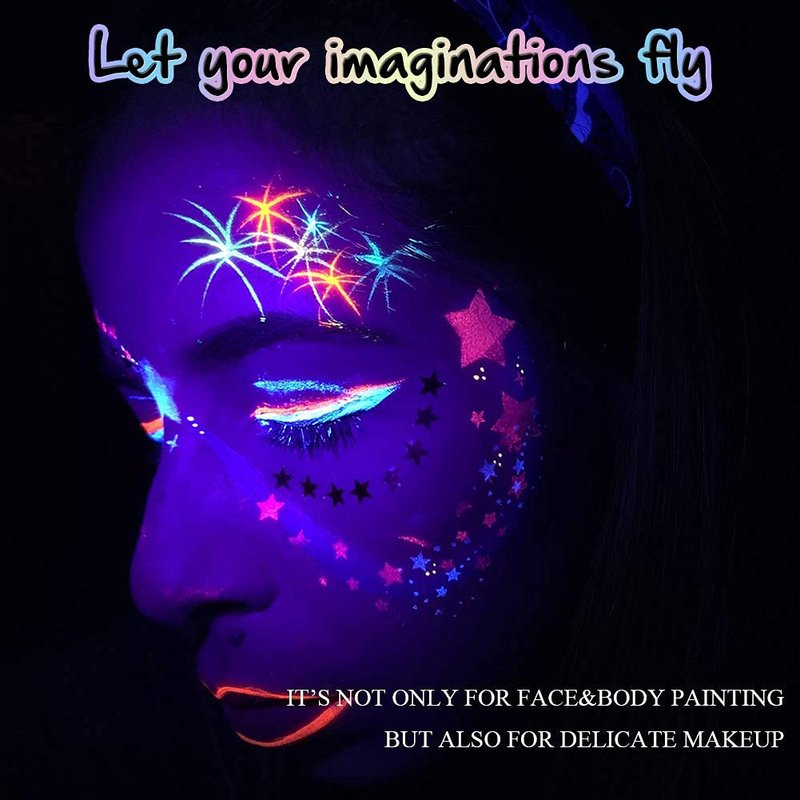 - EASY TO USE AND CLEAN:Just dip brush into water (not too much) and then swirl the brush into the pigment and watch the colour pay off! As It is water based,so you can easily clean up with water. (Here is a little tip:Before paint you could smear some body lotion on your skin,that would make the paints very easy to remove.)