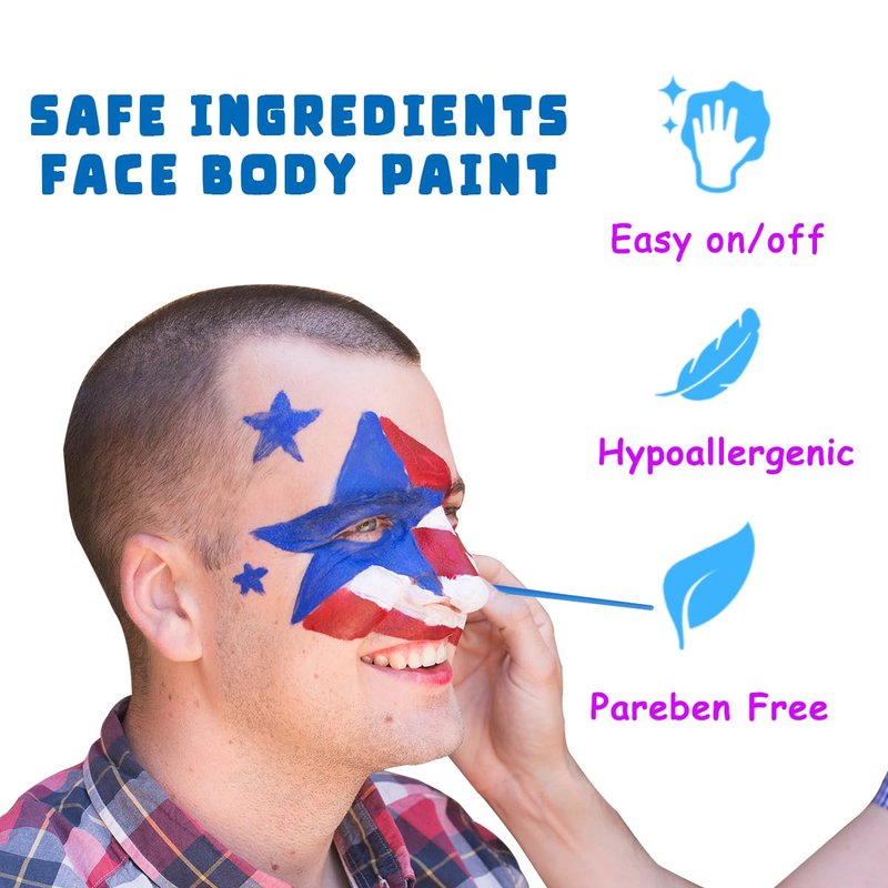 - Safe ingredients : This Cream Face Body Paint is 100% safe ingredients,non-toxic,hypo-allergenic,Eco-friendly material,which makes it ideal for sensitive skin.