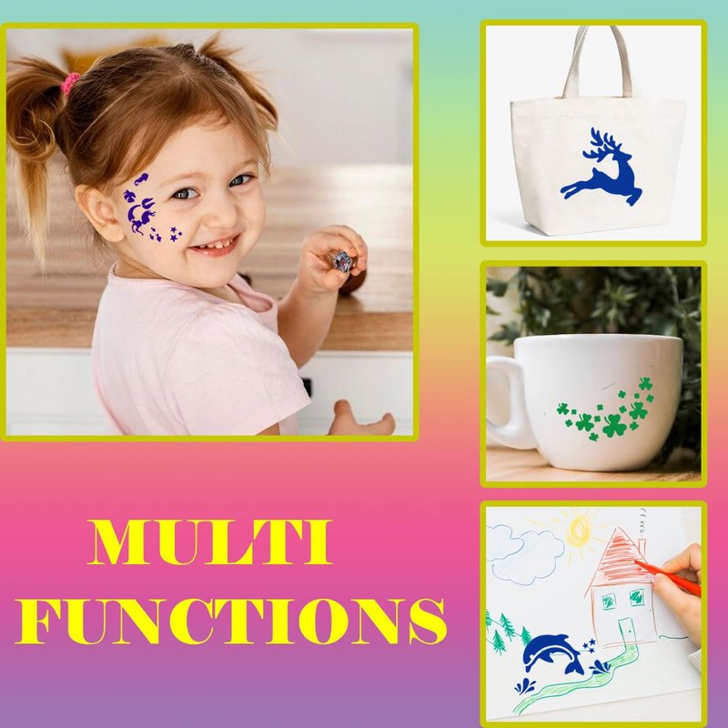 - Perfect for many occasions-Thin and flexible,Great to add fun designs on face or arms of adults and children alike even other surface.You can use them for face painting,body painting, airbrushing and so on. Perfect for Festivals, DIY, Halloween,Christmas and party use.