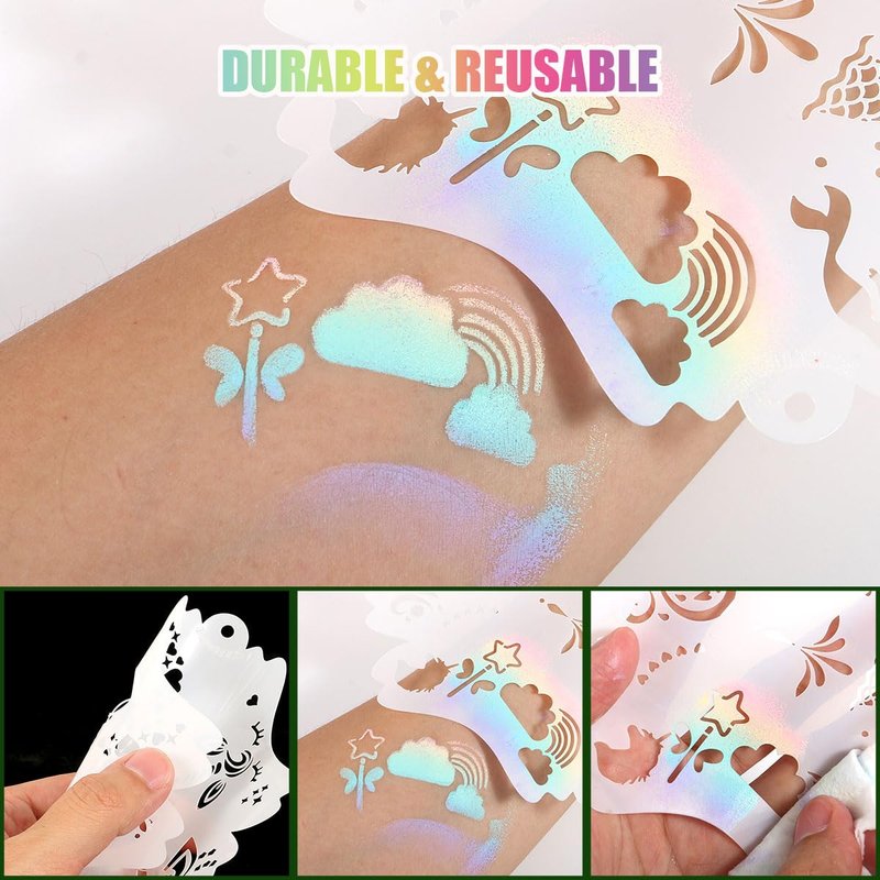 - Perfect for many occasions-Thin and flexible,Great to add fun designs on face or arms of adults and children alike even other surface.You can use them for face painting,body painting, airbrushing and so on. Perfect for Festivals, DIY, Halloween,Christmas and party use.