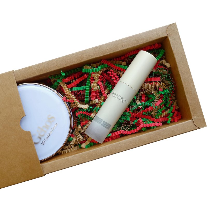 BOXHOME Shred Paper Filler (1LB) Crinkle Cut Paper for Wrapping & Filling Gift Basket Gift Boxes, Red, Kraft and Green-Christmas Mix