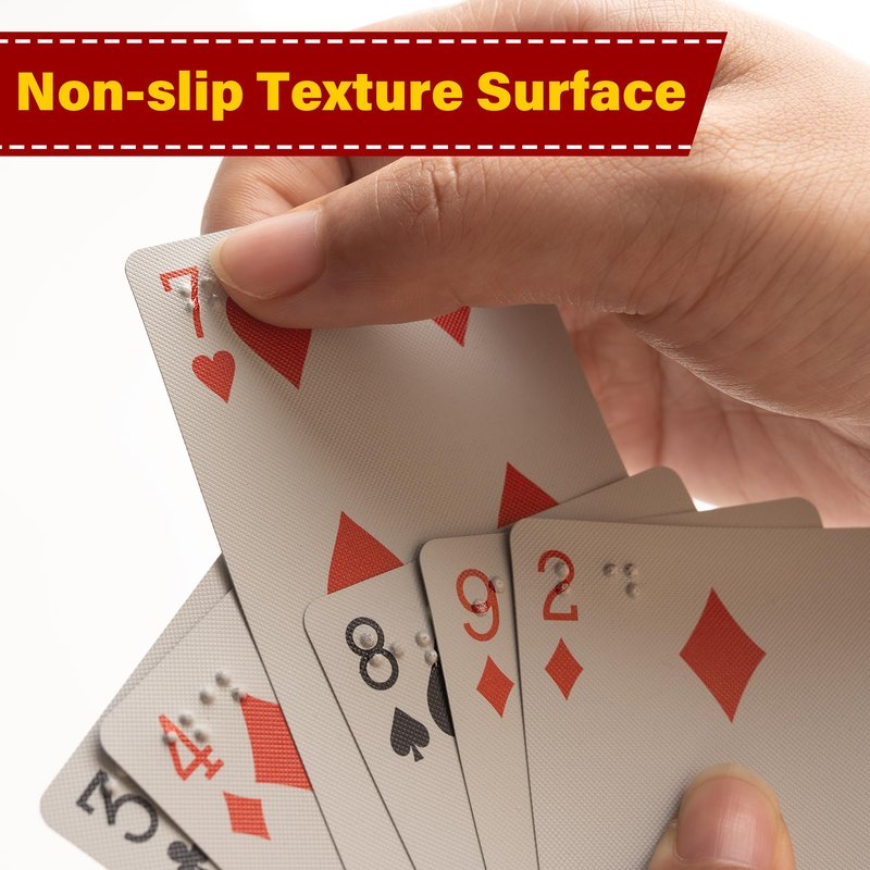 - [INCLUSIVE FUN]—Bring joy to everyone with our braille playing cards. Perfect for visually impaired users, these cards help maintain independence and ensure everyone can participate in family game nights.
