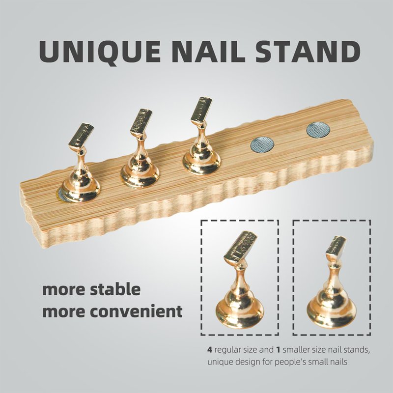 【Innovative Design】Our press on nail stands featuring 4 large and 1 small nail holder, specifically designed for pinkie nails, strong magnet providing enhanced stability and a secure grip for easy paint polish application.