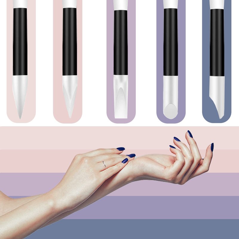 BQAN 5Pcs Nail Art Silicone Pens Nail Art Foil Pen Acrylic Handle Nail Polish Carving Pen Rubber Tip Brushes