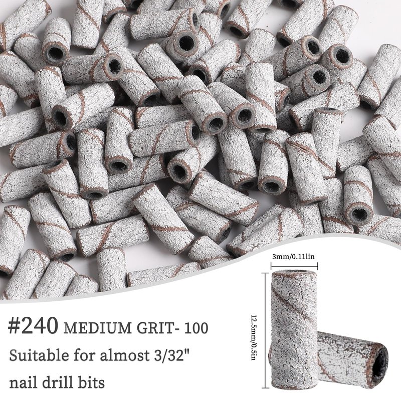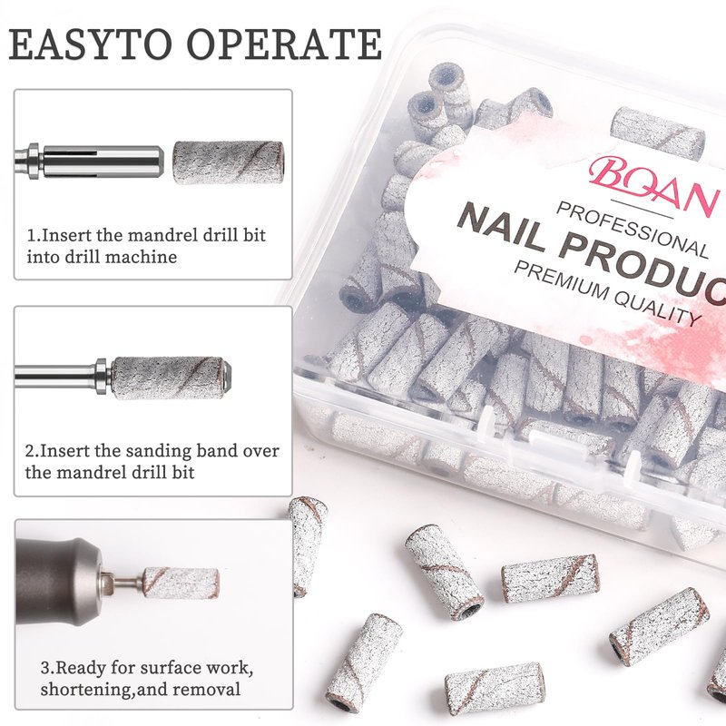 - BQAN Upgrade 3mm Sanding File: Come With 100pcs #240 grits small sanding bands which work perfectly with the included 3.1mm small mandrel nail bit. Create a comfortable nail experience when removing gel nails, shaping acrylic nails, and blending for a smooth surface.