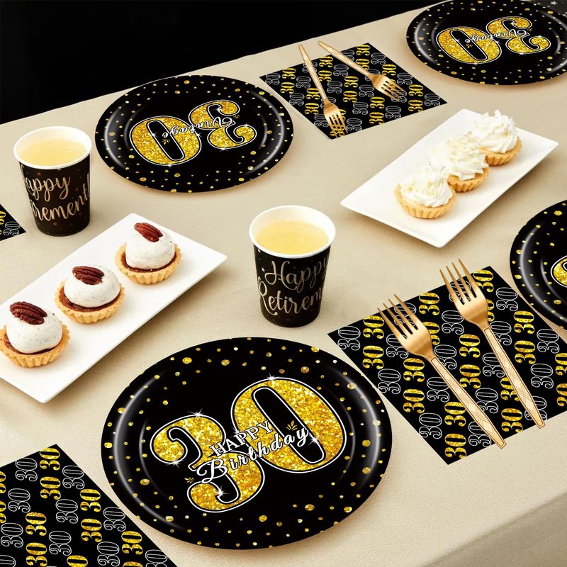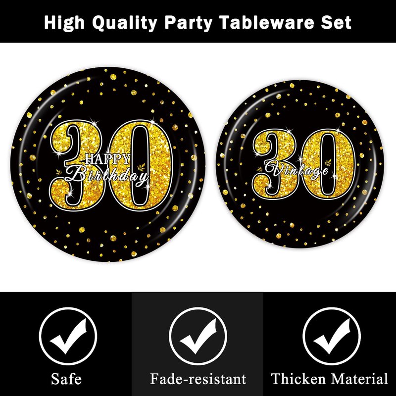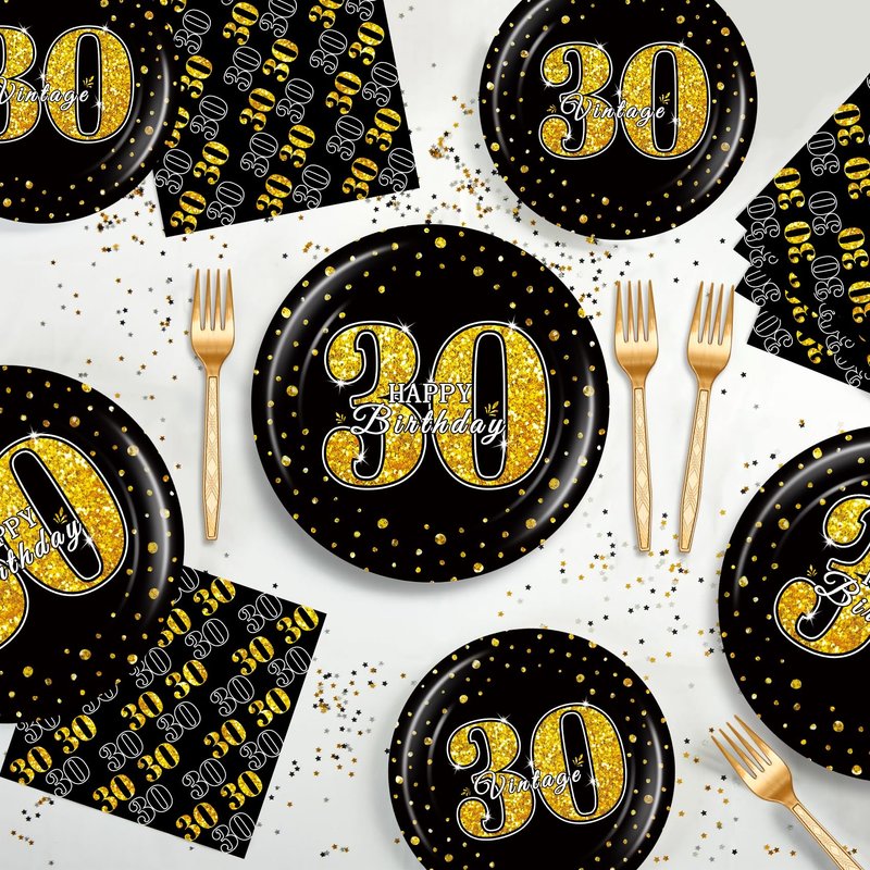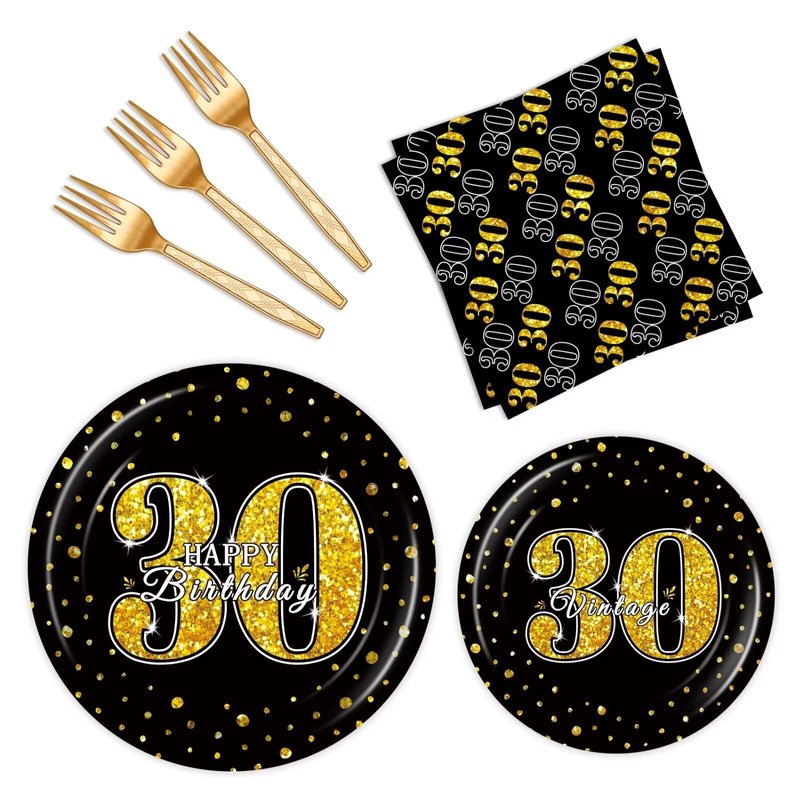 - Package Includes: You will receive 24 pieces of 9-inch 30th birthday party plates, 24 pieces of 7-inch 30th birthday cake plates, 24 pieces of forks, and 24 pieces of 30th birthday napkins, 96 pieces in total. These happy 30th birthday decorations will be sufficient to meet your needs for serving 24 guests.