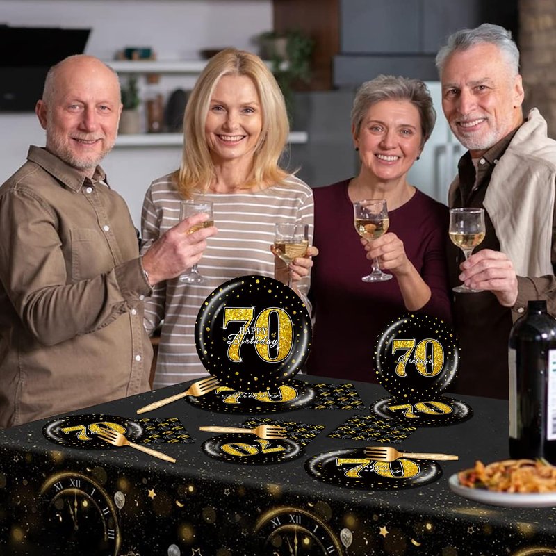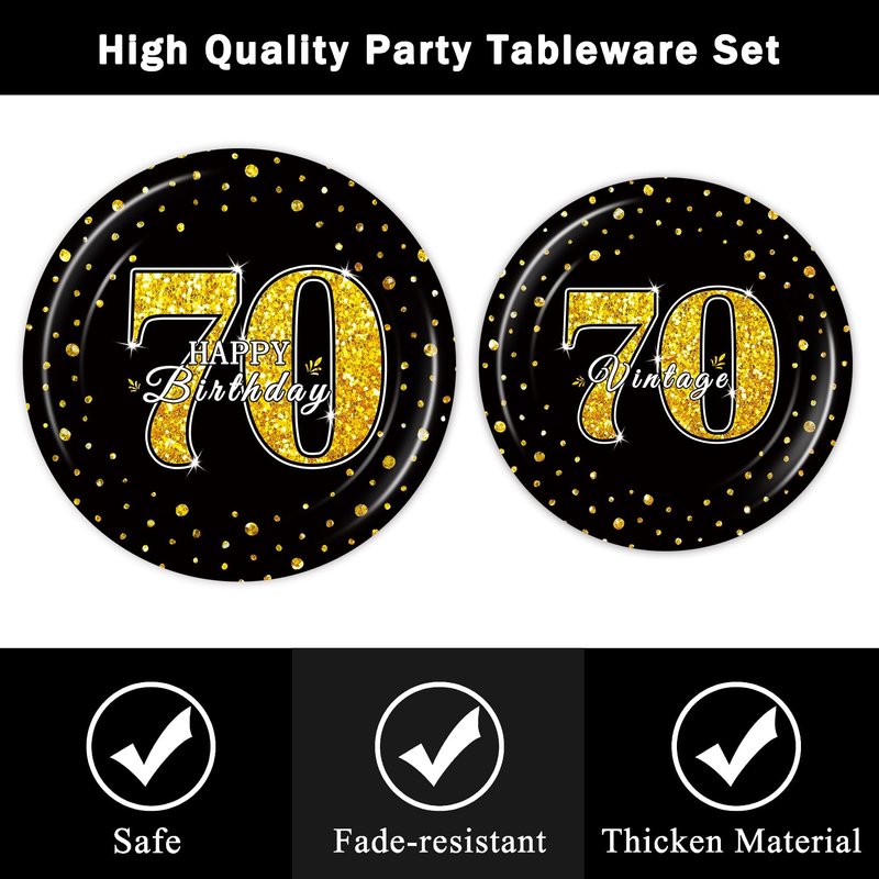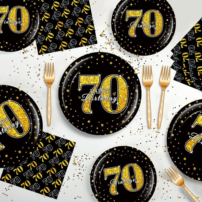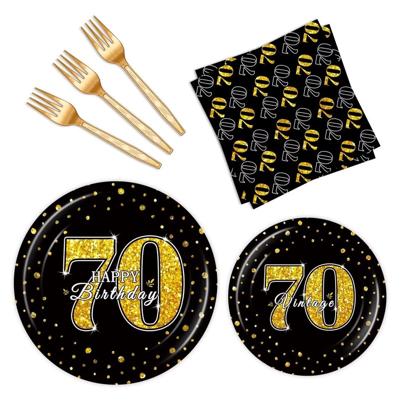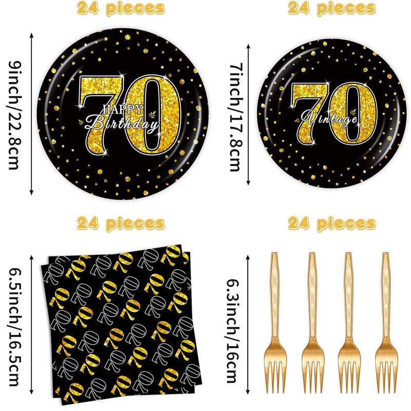 - Package Includes: You will receive 24 pieces of 9-inch 70th birthday party plates, 24 pieces of 7-inch 70th birthday cake plates, 24 pieces of forks, and 24 pieces of 70th birthday napkins, 96 pieces in total. These happy 70th birthday decorations will be sufficient to meet your needs for serving 24 guests.
