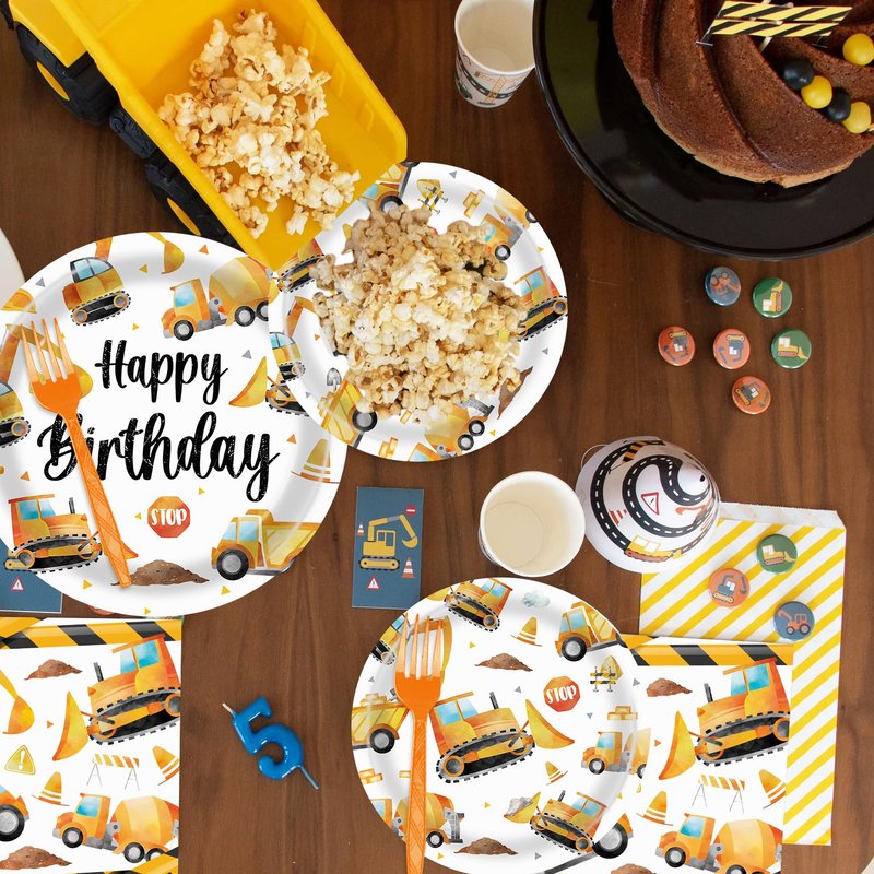 These construction birthday plates set will be sufficient to meet your needs for serving 24 guests.