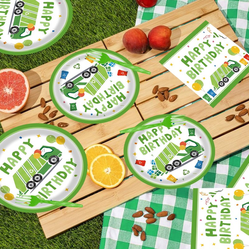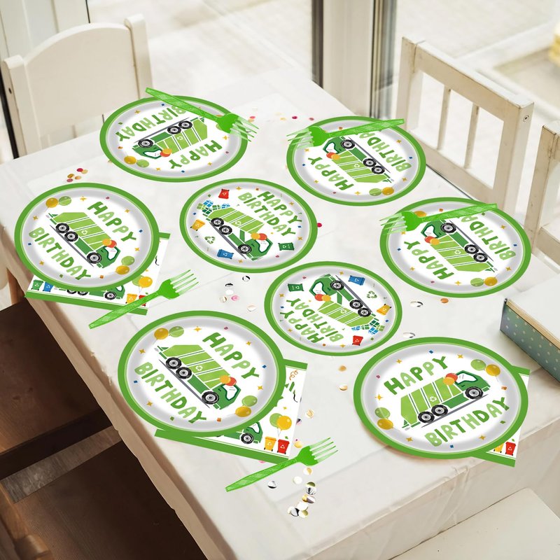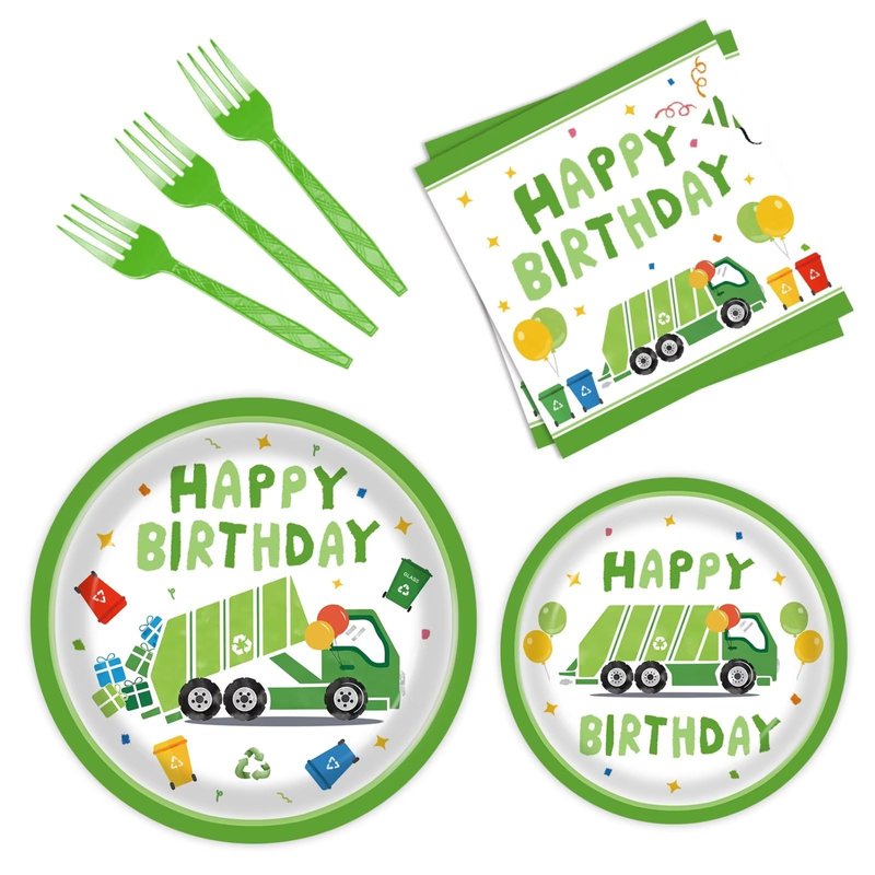 - Package Includes: You will receive 24 pieces of 9-inch garbage truck party plates, 24 pieces of 7-inch garbage truck birthday plates, 24 pieces of forks, and 24 pieces of garbage truck plates napkins, 96 pieces in total. These garbage truck birthday party supplies will be sufficient to meet your needs for serving 24 guests.