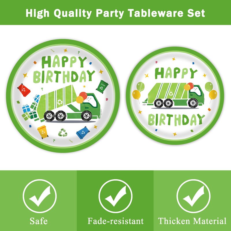 - No Need to Clean: The garbage truck birthday supplies are made of paper, durable safe, and eco-friendly. These garbage party decorations are disposable, no need for you to clean garbage truck supplies after the party is over, so you can enjoy your party time. Please don't heat garbage truck cake plates.