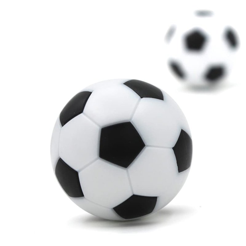BQSPT 32mm Foosball Balls Foose Balls Table Soccer Game Replacement Foosballs 16pcs,Foosball Balls Official 32mm Mini Table Footballs Ball Accessory Black.Much of what makes a "good" foosball is what you are used to. This is the smooth, plastic kind,decent quality. Note that they are not what you see in most competition and high end tables. Those balls have a bit more rubbery and rough texture. The plastic balls play faster and wilder. Because they are smooth, you can get slides and skips and end to end bounces that don't happen with the textured balls. Of course, that means you generally have less control. For some, that's what they are used to (and I've seen some bar players that had amazing control with the smooth balls). For those who are used to textured balls, you may want to try these to have a different play experience. But, in general, if you want more a controlled game, or competition feel, these are not what you want. Kids love them cause the action is wild.Colors are Bright, balls are durable..Product Specifications:Colour:Black & WhiteMaterial: PlasticSize:foosballs 32mm (1.26") (Diameter)Weight: 17 grams each ball. Total Weight:272gPackage Included:Foosballs 16 pack set, Foose Balls 32mm,Black & White Tabletop Soccer BallsWaterproof bag packing + PE bagWarm Prompt:Children should play foosballs under supervision.The foosballs are smooth, you can get slides and skips and end to end bounces that don't happen with the textured balls.They are not the Tornado tournament balls.if you find your table is not compatible with our replacement foosball balls,any questions please feel free to contact us.Thank you!