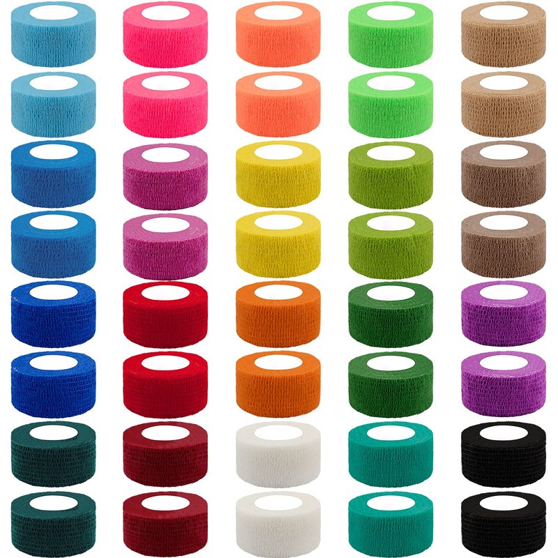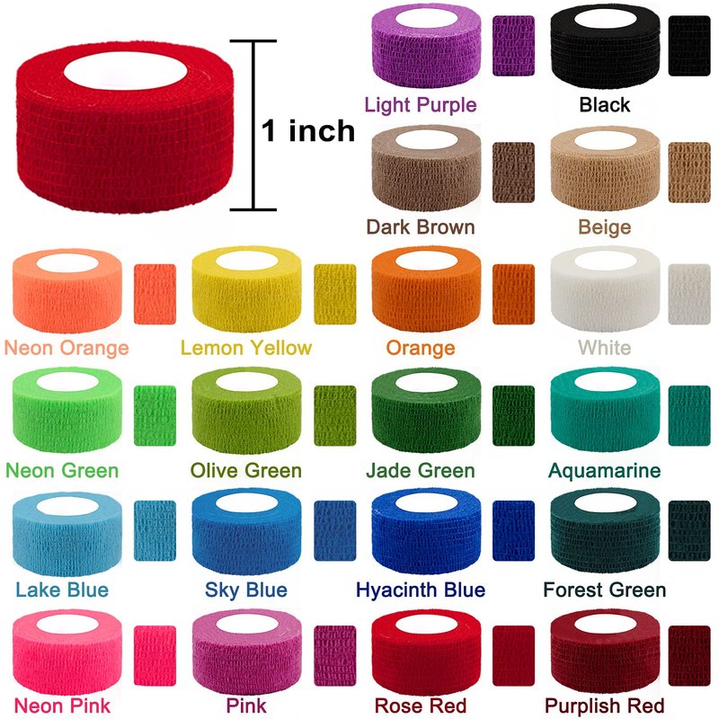 BQTQ 40 Rolls Self Adherent Wrap 1 Inch Self Adhesive Bandages Wrap(20 Colors) Specifications Width: 1 inch Length: 5 yards per roll Quantity: 40 Rolls Color: 20 colors as the picture show Package include 40 x 1 inch self adhesive bandage wrap