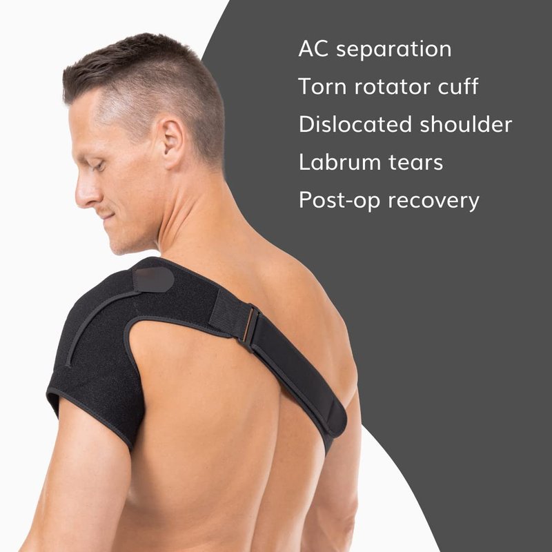 - Shoulder brace support can be used for a range of pain relief conditions and injuries; helps treat and manage bursitis, shoulder separation recovery, dislocation, subluxation, calcific tendonitis, torn rotator cuff, SLAP labrum tears, arthritis, upper arm injury, pinched nerves, AC separation, and impingement