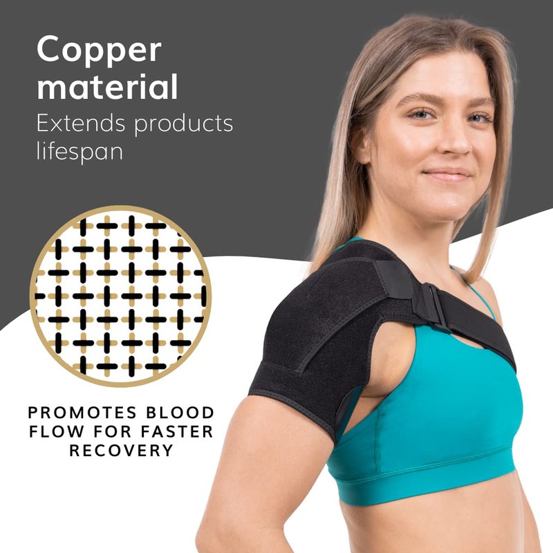 BraceAbility Shoulder Support Brace - Copper Arm Immobilizer Compression Sleeve for Torn Rotator Cuff, Labrum Tears, Bursitis, Impingement Injury Treatment, Dislocation Relief for Men and Women (S/M)