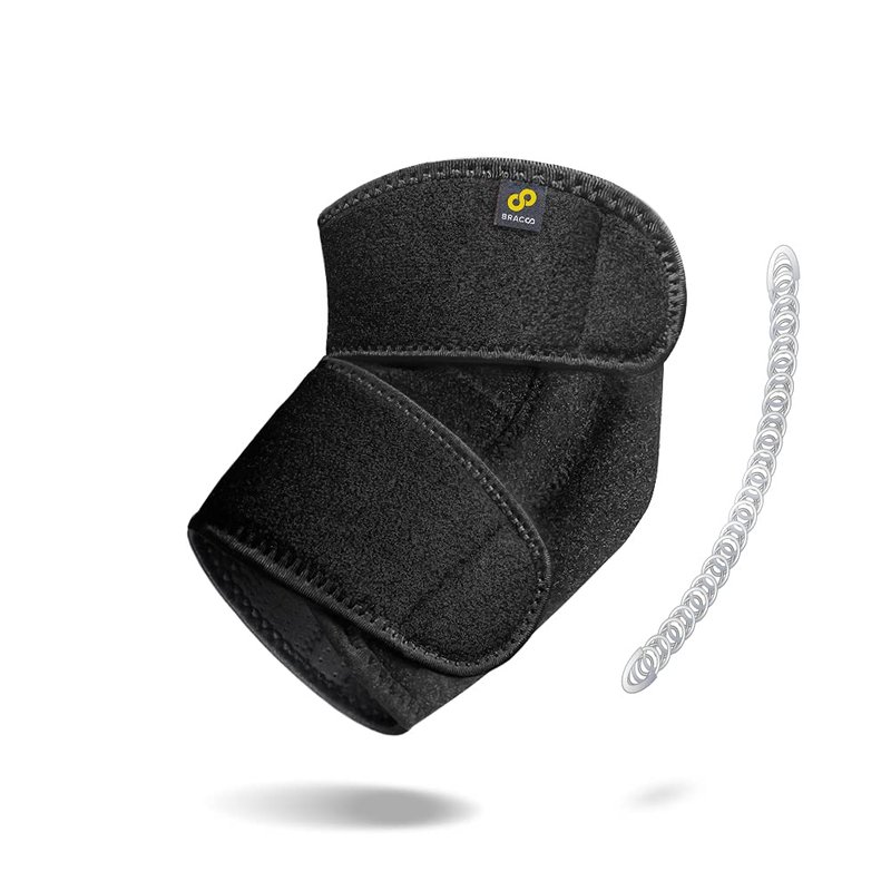 Superior Technology & Design : Our elbow support features simple yet effective design which fits either arm. The brace can be tailored to fit any elbow shape with adjustable straps which attach to any point on the external surface. This provides soothingly warm pressure & mild/medium support to the elbow region. We use only quality neoprene that’s fully breathable, reduces moisture build-up and odor making it ideal for all-day/night wear. Medical Performance : Provides mild to moderate support to the elbow joint and tendons. Neoprene is an excellent thermal insulator, which means the affected region stays warm thereby boosting blood circulation and accelerating the body’s natural recovery. Ideal for relieving chronic arthritic pain, reducing inflammation, or protecting sensitive tendons and muscle tissue during recovery. Ideal for : Supporting elbow injuries-ligament instability, sprain, or muscle strain, Accelerating natural recovery to the elbow region ,Reducing the risk of sports-related injuries common to weightlifting, tennis, squash, and other arm-intensive exercise ,Tendonitis, bursitis & arthritis of the elbow ,Post-surgery or post-removal of casting. Technical Specifications : 75% neoprene, 20% nylon, 5% spandex ,Weighs 73g ,Hand wash in cool water – hang dry ,Available in Black. Fits either the left or right arm ,1 wrap per package, Designed in the USA. If you have an allergic reaction to neoprene, discontinue use immediately and consult your physician.