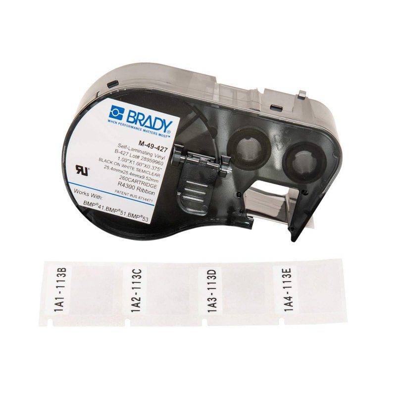 Brady - 131580 Self-Laminating Vinyl Label Tape (M-49-427) - Black on White, Translucent Tape - Compatible with BMP41, BMP51, and BMP53 Label Makers - 1" Height, .375" Width