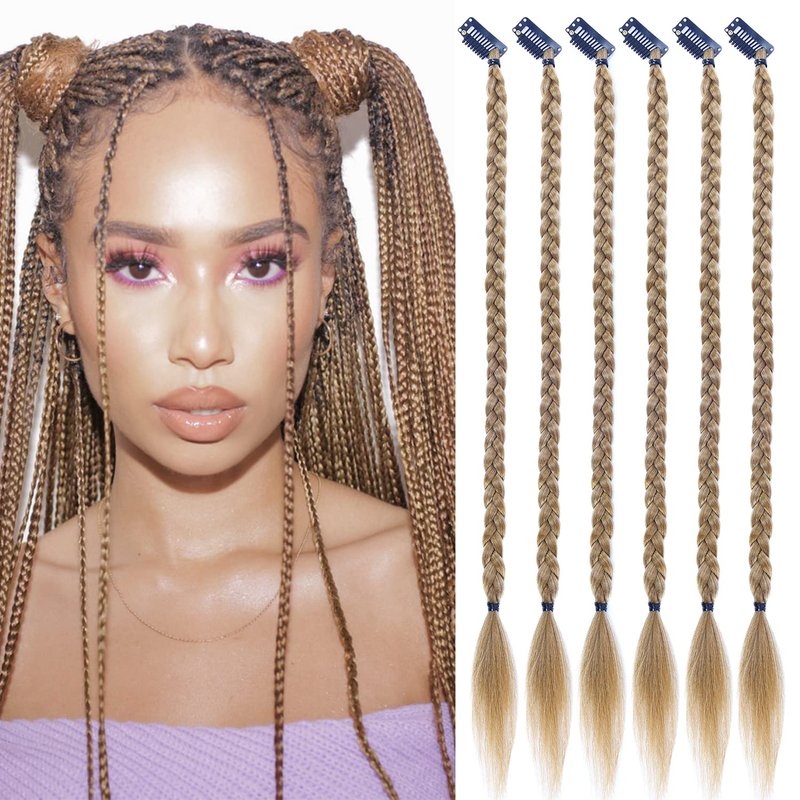 - Parameters: 18-inch 6 pcs Clip-in braid hair extensions, 1 piece with 1 clip. The clip in hair extension is lightweight and will not be a burden on the scalp; The clip allows you to put on or take off effortlessly.