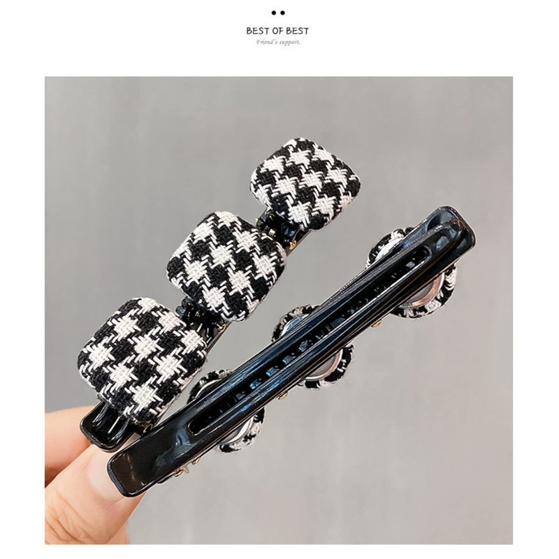 Braided Hair Clips for Women Satin Fabric Hair Clips Braided Hair Braided with 3 Small Clips Hair clip on forehead Shattering hair clip Duckbill Clip Black and white thousand bird grid 5 Pack