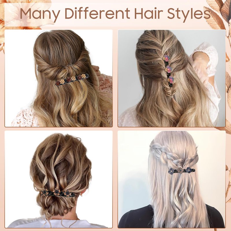 - 【Braided Hair Clips for Women】The sparkling crystal stone braided hair clips are uniquely designed to be double layers with 3 small clips. Each set of hairpins is matched with 4 rhinestones of different colors and styles. Let you have more choices to match different clothes and styles. You don't need to spend a lot of time doing your hair, and you can become the highlight of the crowd with duckbill hair clips.