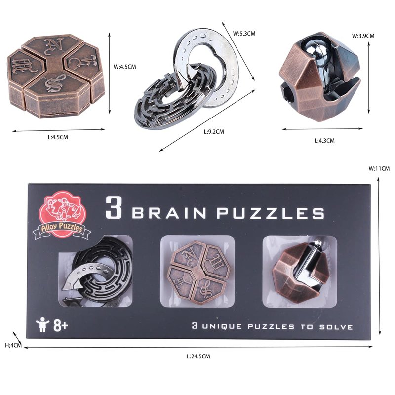 - Quality material: the brain teaser puzzles adopts thick and durable zinc alloy material, which are no irritating smell, safe, and reliable to play; With nice workmanship and reliable quality, it can be applied by you for years, giving you nice play experience
