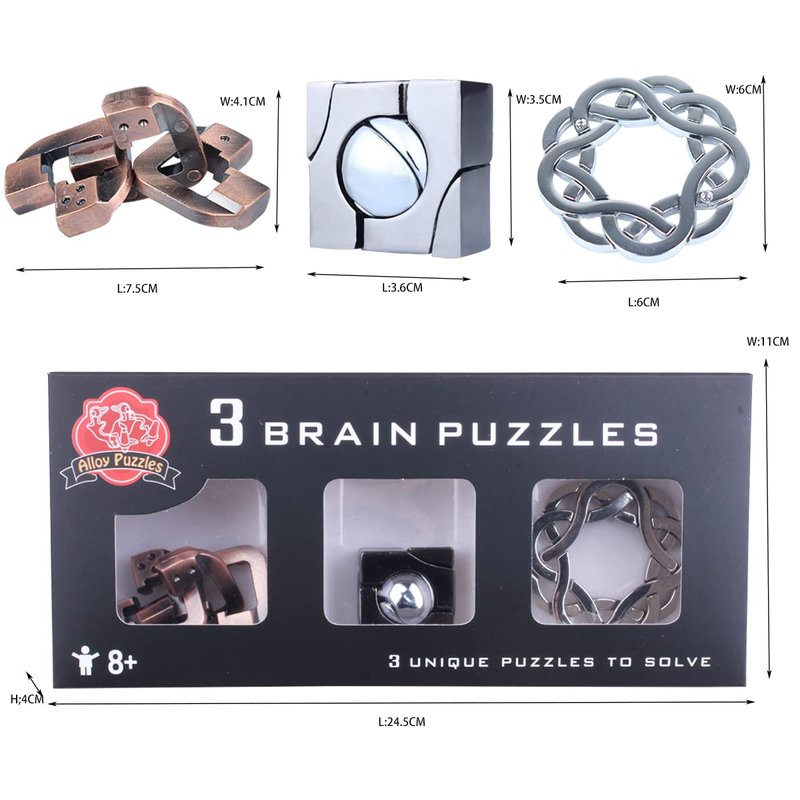 - Quality material: the brain teaser puzzles adopts thick and durable zinc alloy material, which are no irritating smell, safe, and reliable to play; With nice workmanship and reliable quality, it can be applied by you for years, giving you nice play experience