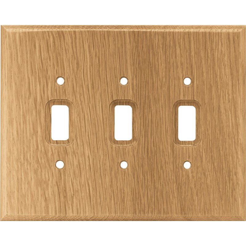Brainerd 126430 Wood Square Triple Toggle Switch Wall Plate / Switch Plate / Cover, Medium Oak
