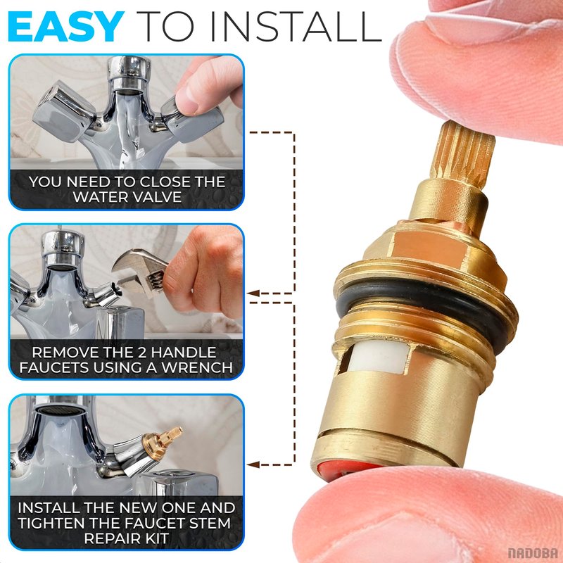 - Easy to Install: This ceramic shower cartridge is easy to use and install, firstly you need to close the water valve, then remove the 2 handle faucets, use a wrench to loosen and remove the old ceramic disc valve, then install the new one, finally tighten the faucet stem repair kit.