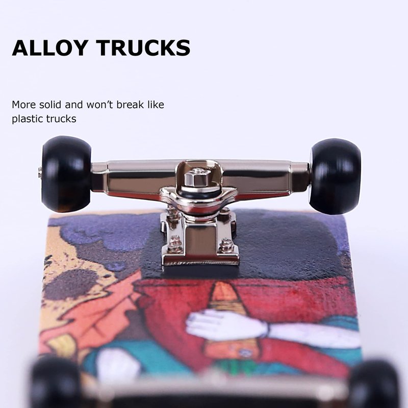 - WIDE MAPLE DECK AND ALLOY TRUCK: BRAVORD fingerboards consist of a 5-ply maple deck and 2 alloy trucks, which apply higher durability and better tenacity to the products. Our finger skateboards have 2 different sizes to choose from, one is 32mm and the other one is 34mm. A wide deck supports you to have a more stable finger ride.