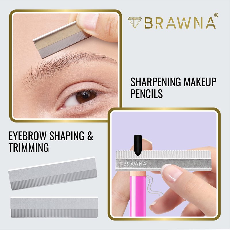 - ✔ BENEFITS IN FULL: These razor blades are perfect to be used for a number of purposes such as eyebrow shaping, trimming excess eyebrows, shaving beard, face, armpit or any other body hair. Moreover, they are good for sharpening Brawna Brow Pro Pencils or any other makeup pencils!