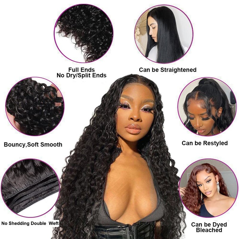 Material: Water Wave Bundles is 100% Human Hair , Cut From Young Gilrs Directly, No Shedding, No Tangle, Can be Dyed, Bleached, Restyled any Styles You Want.