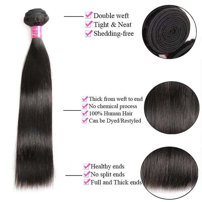Brazilian Straight Hair With Closure 3 Bundles Unprocessed Virgin Human Hair Bundles With Lace Closure Free Part Hair Extensions Natural Color (20 22 24+18",Free Part)