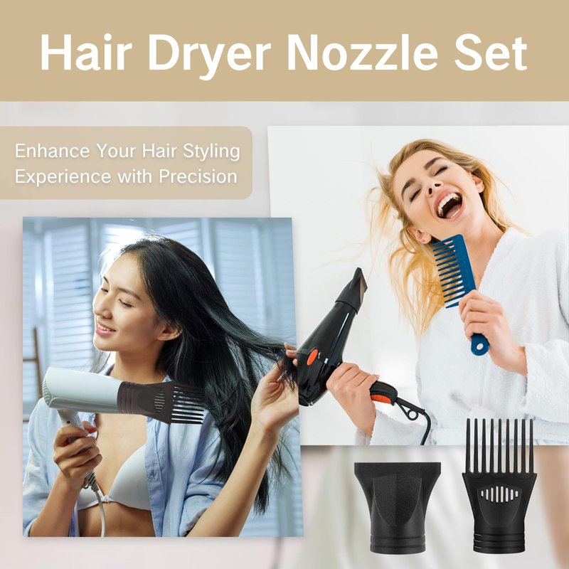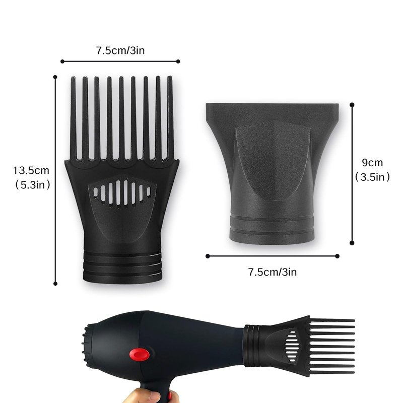 **Targeted Airflow Control**: Experience salon-quality styling at home with our dryer nozzle replacement. Featuring advanced narrow concentrator nozzle technology, it allows you to precisely target airflow, significantly reducing drying time and giving you complete control over your hairstyle. **Effortless Styling**: Our hair dryer attachment serves as a versatile diffuser, dispersing airflow to minimize impact on your hair. Achieve beautiful luster, smoothness, and shine while styling, thanks to the innovative design that enhances the overall health and appearance of your hair. **Professional-Grade Results**: Designed to be lighter, more durable, and powerful, our blow dryer attachment delivers professional-grade results with every use. Say goodbye to frizz and hello to sleek, shiny hair that exudes confidence and style. **Convenient Travel Companion**: Whether you're jet-setting around the globe or simply on the go, our universal blow dryer comb attachment is the ideal travel companion. Its lightweight and portable design ensures you can enjoy a flawless blow-dry experience wherever you are. **Exceptional Durability**: Crafted from premium plastic material, our hair dryer concentrator is built to withstand high temperatures without deformation. This ensures long-lasting performance and reliability, even under the most demanding styling conditions. Invest in quality and elevate your styling routine with our premium blow dryer nozzle replacement.