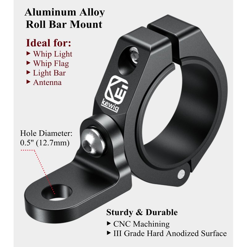 - The tube clamp mount with 360° rotating flag hole (Hole Diameter: 0.5''/12.7mm). Ideal for a variety of applications including whip lights, whip flags, antennas, light bars, LED off road lights and driving lights