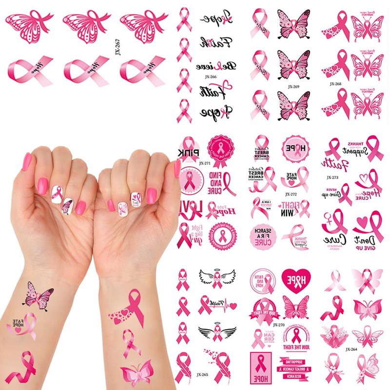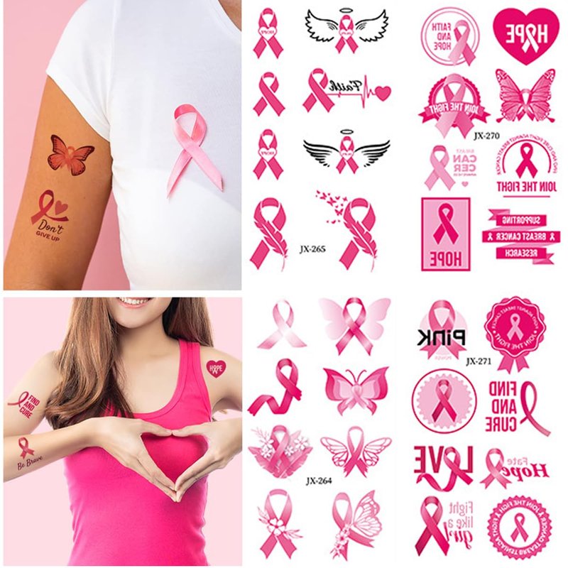 - Breast Cancer Party Supplies: You will get 10 sheets of Breast Cancer Awareness Tattoo Breast Cancer Temporary Tattoos, use for temporary tattoos face decals for Pink Ribbon Breast Cancer Awareness Month Activity DIY decorations, sufficient quantity to meet most of your needs and share with family or friends.