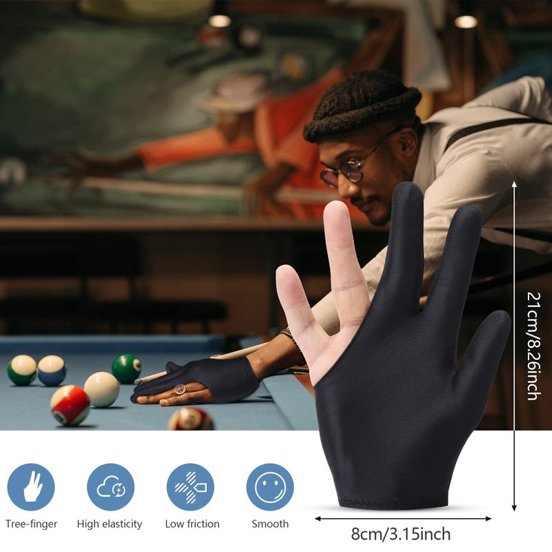 The 3 fingers cue glove is ideal for people with sweaty palms. It helps you absorb sweat while playing billiards, keeping your hands dry, increasing friction and preventing slipping.