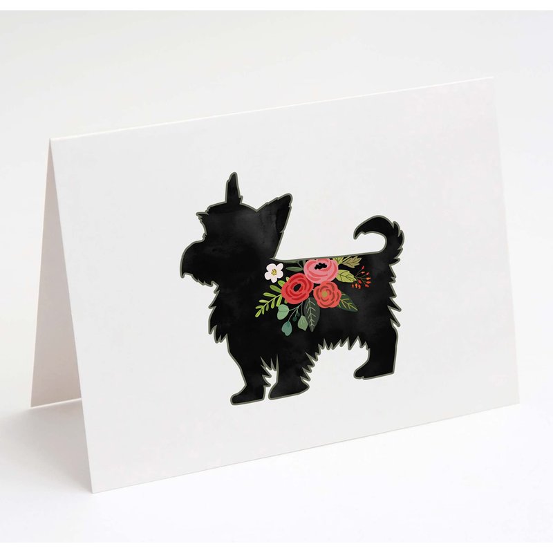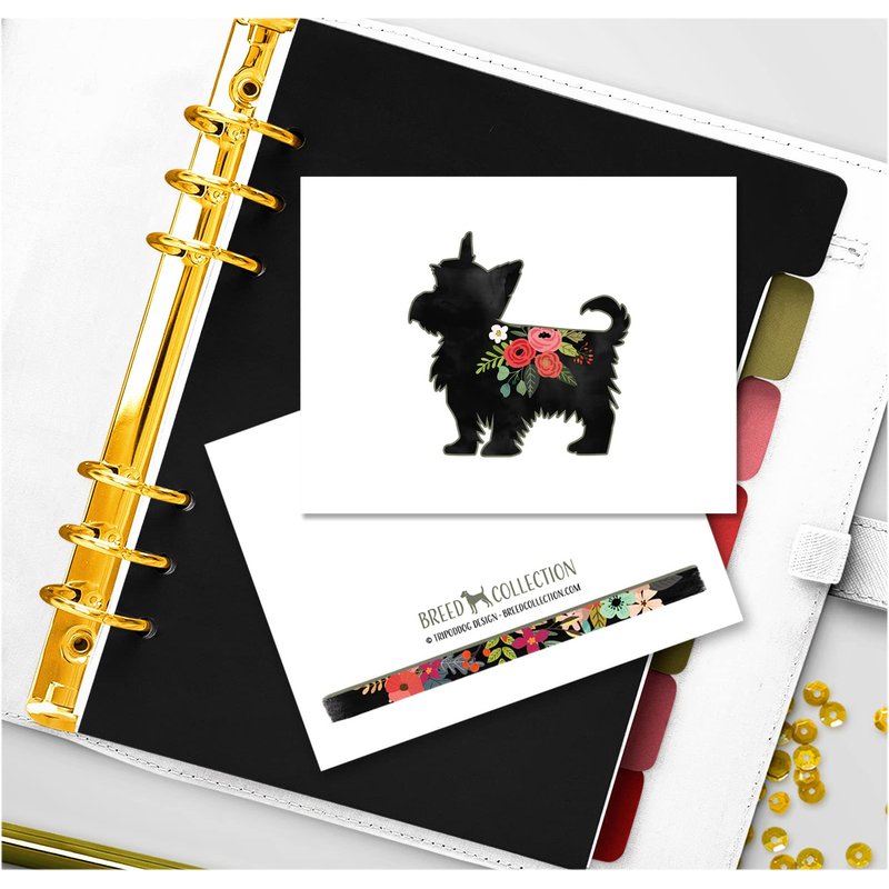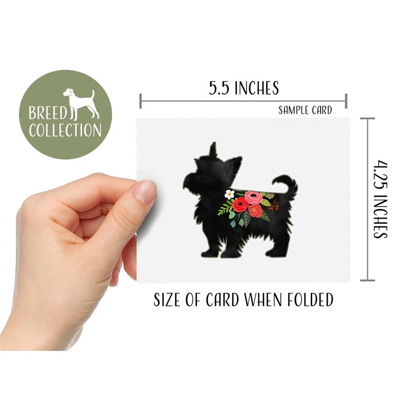 Breed Collection | Yorkie Yorkshire Terrier or Silky Terrier |100 Breeds| Dog Breed Silhouette Boho Floral Greeting Cards and Envelopes | Pack of 8 | A2 Size Blank Note Cards
