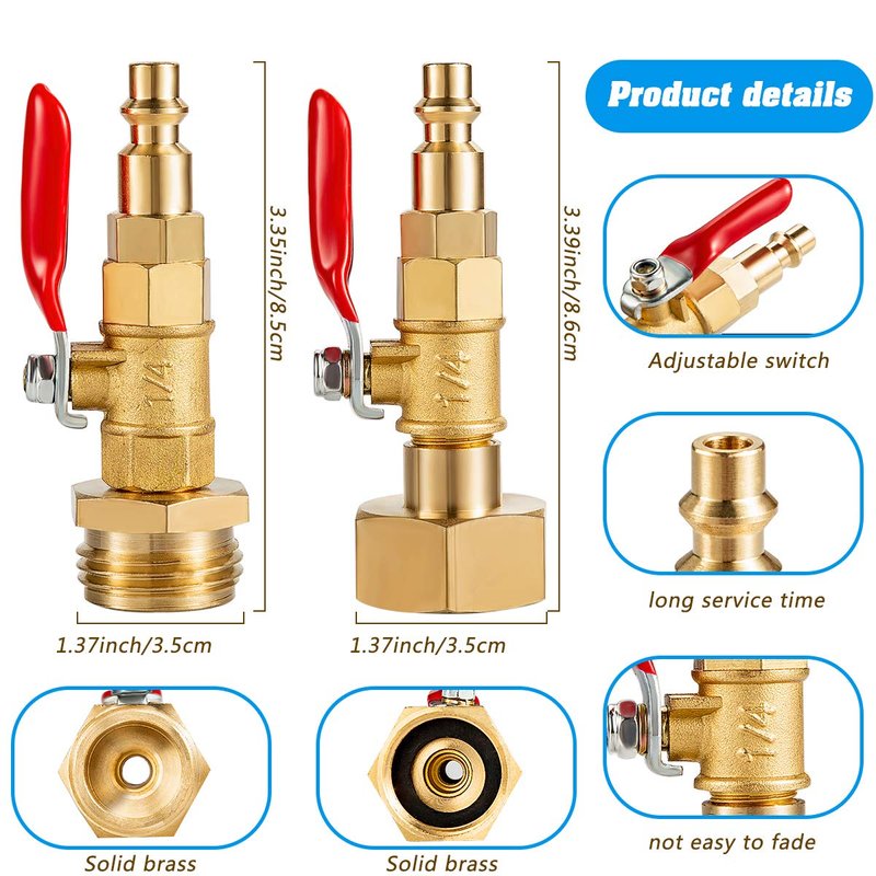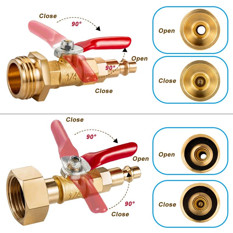 - ★ Package including: 2PCS Couple Brass Winterize Adapter, 1/4 Inch Male Quick Connecting Plug &3/4 inch Male GHT Thread &1/4 Inch Ball Valve with 2 Pcs Washers .