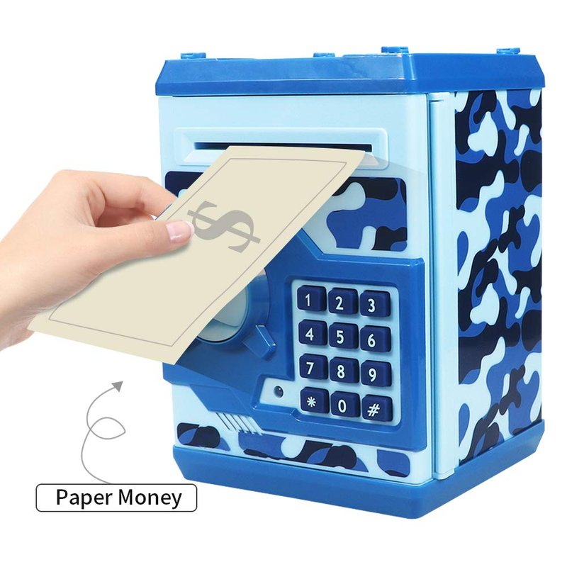 - 【Best Gift for Kids】This piggy bank can help children save money in a planned way. It can Save Cash/Coins with Electronic Code.It can store about 600 pieces of Coins or 100 pieces of paper money.Most importantly,It can teach children to form a habit of Saving money from an early age. This is a toy that is very good for children's Physical and Mental growth.