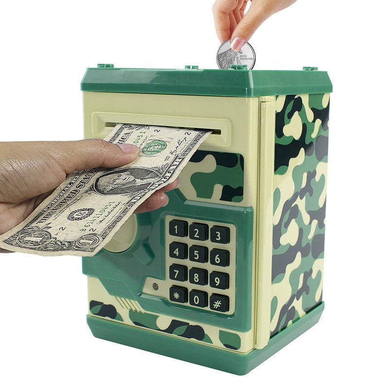 Brekya Mini ATM Piggy Bank Security Machine Best Gift for Kids,Electronic Code Piggy Bank Money Counter Safe Box Coin Bank for Boys Girls Password Lock (Camouflage Green)
